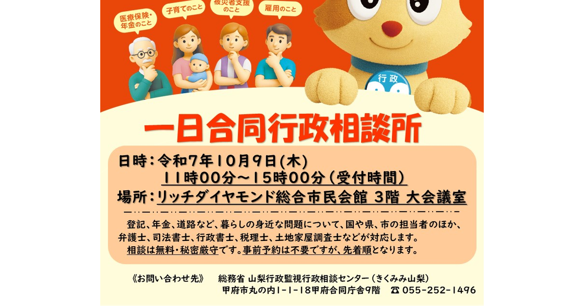 山梨行政監視行政相談センター→ https://www.soumu.go.jp/kanku/kanto/yamanashi.html