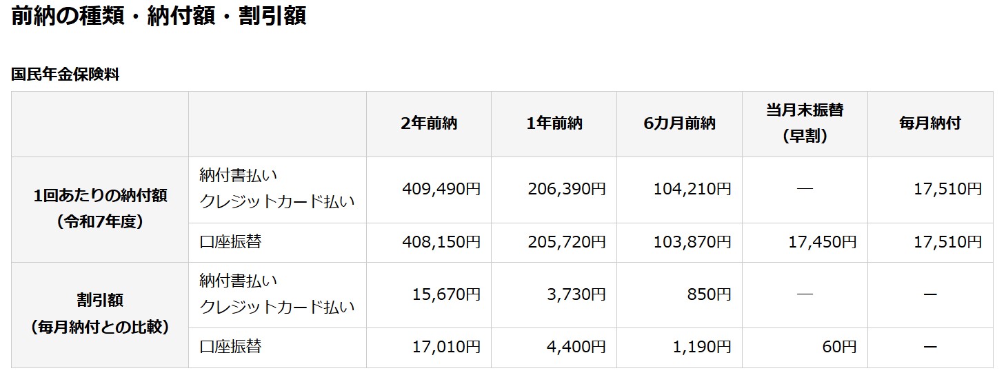 日本年金機構のパンフレットには、「前納・早割が便利でお得です!」というサブスクの売りこみみたいなフレーズ。繰り返しますが、納付は国民の義務ですけどね。