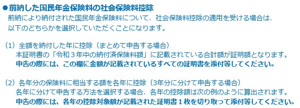 (2)または、納付後3年間に分けて社会保険料控除を受けてもいいです。