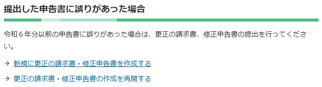 過去の申告の修正をする場合には、このままスクロールしてもう少し下、